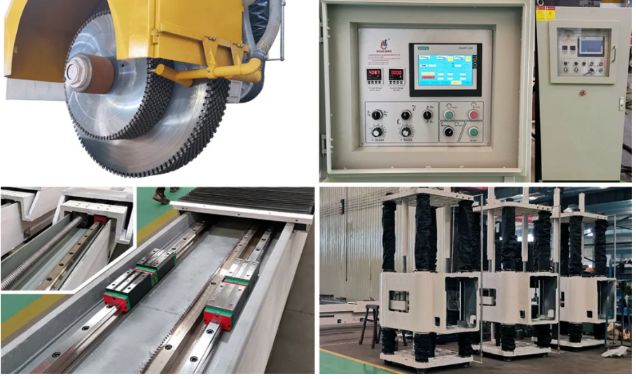龙门多片组合锯 : 采用金刚石工具和高速切割技术,适用于高效切割各种厚度的石材板材(厚度如17毫米,20毫米,30mm等)。